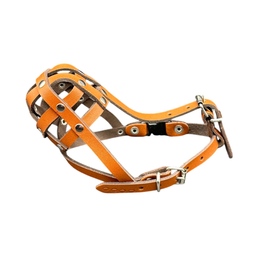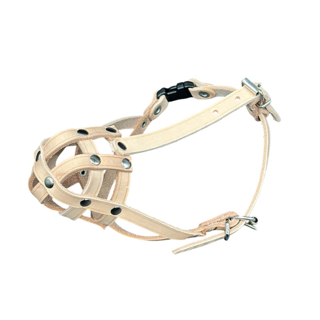 Fully adjustable, strong genuine leather muzzle straps ensure the muzzle stays on when you choose so.